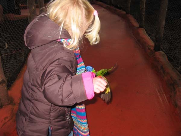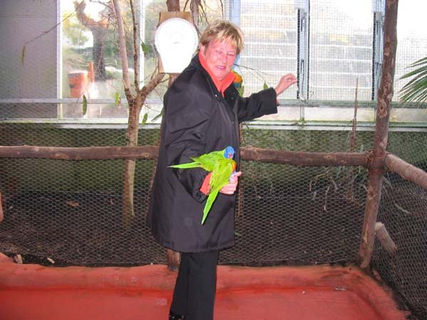 En erwas een voliere waar je papagaaien mocht voeren, spannend!!