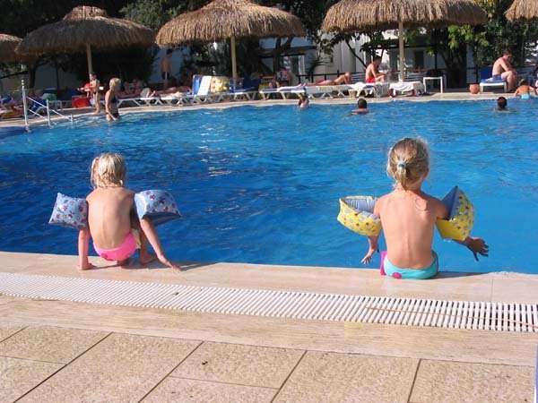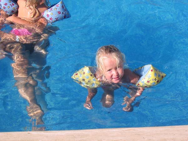 Ons huisje stond echt vlakbij het zwembad waar we elke dag, 's morgens en 's middags in gingen zwemmen. Gewoon in het diepe bad hè.