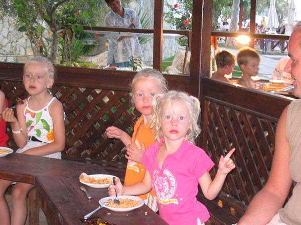 Elke avond werd er voor ons kinderen een speciaal kinder-buffet geserveerd. Lekker frietjes, en spagetti eten, met een ijsje toe.
